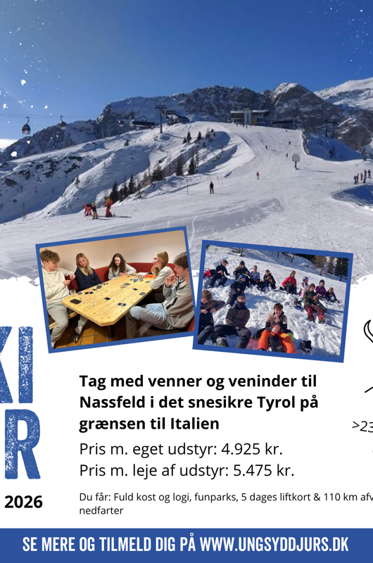 SKITUR MED UNGSYDDJURS Turen går til Nassfeld i det snesikre Tyrol nær den Italienske grænse.