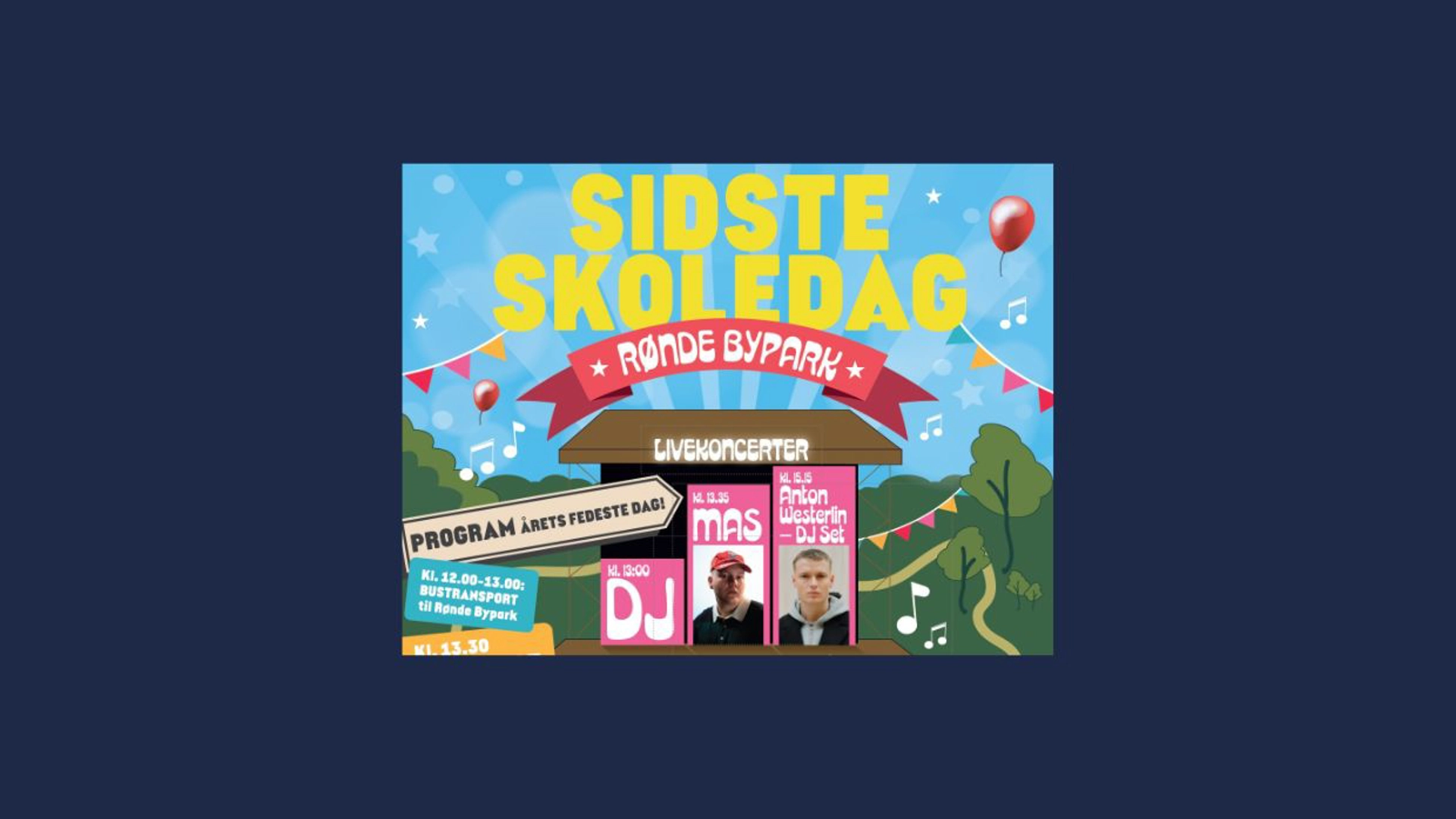 Rønde Bypark danner onsdag den 13. maj 2026 kl. 13:00-16:00 rammen om en fælles sidste skoledag for 9. klasserne og enkelte 10. klasser i Syddjurs Kommune.